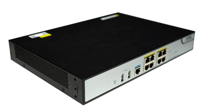 产品正面为接口设计,其接口设计十分紧凑,主机配备有8个千兆端口,充分满足了企业用户的端口需求,Console管理端口便于管理员对设备进行命令行管控。最左侧为复位按键,此外两个USB端口能够提供更加丰富的可扩展性。接口右边为指示灯设计,通过指示灯能够清晰的得知产品的运行状态。