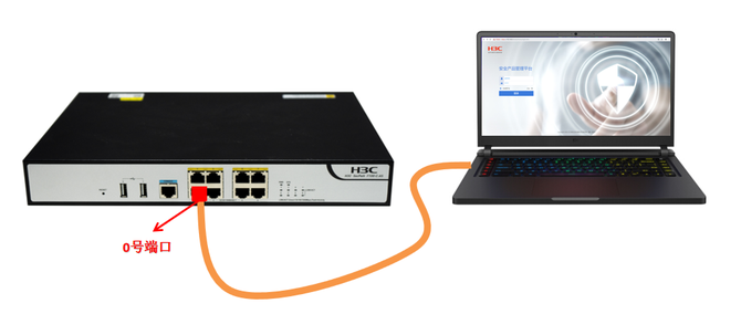 首先将H3C F100-C-A5防火墙的0号端口与PC端进行连接。
