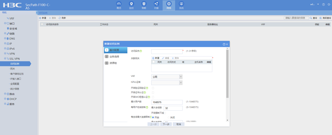 而对接口、链路、DNS、IP等网络的配置工作都能够通过“网络”界面完成。H3C F100-C-A5防火墙支持丰富的VPN功能,譬如L2TP、IPSec/IKE、GRE、SSL等就能完美支持,并实现与智能终端的对接。