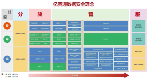 对政策制度的分层合规,对权责访问对象的分权分则,对数据的分类分级和对资产的分布分析,组成了亿赛通的 “分”。“分”是从整体架构的层面来规划数据安全,是数据安全综合解决方案的基础,没有准确合理的“分”就没有有效安全的数据应用和管控。