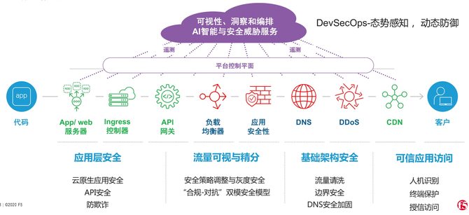 基于大数据和AI的安全分析,F5对所有的流量进行监控,做主动性流量和用户行为分析,横向综合分析,以及多云安全分析,最终把威胁情报和安全服务提供给客户。