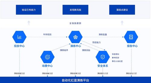建设智能化的安全运营机制,以进一步提升数据安全治理的自动化水平和效率。以红蓝演练为例,通过沉淀自动化、模块化、组件化的红蓝演练能力,制定演练科学投放的策略,并建设全链路风险跟踪能力,形成常态化的红蓝演练机制,从攻防视角更加高效、及时地识别和修复安全风险,实现“以攻促防、攻防相长”的目标。