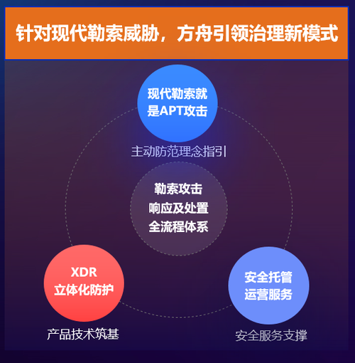 针对现代勒索威胁持续猛烈的攻势,能够有效遏制勒索团伙APT攻击的最新勒索威胁防护体系——亚信安全「方舟」正式推出。以治理理念为指引,以产品技术为基础,以安全服务为支撑,三位一体的亚信安全「方舟」将引领勒索治理进入全新模式,并依此形成全链条、立体化的勒索治理合力。