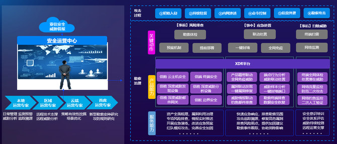 亚信安全首席研发官吴湘宁提到:“由于勒索攻击深度结合APT攻击技术手段,要解决各种来源的威胁情报杂乱无章,安全团队缺乏完整的威胁可见性、应急响应流程 ‘纸上谈兵’等问题,势必需要XDR这样的联动方案,从威胁的检测、控制,再到威胁狩猎、调查、归因等整体联动防御,方能产生更好的效果。”