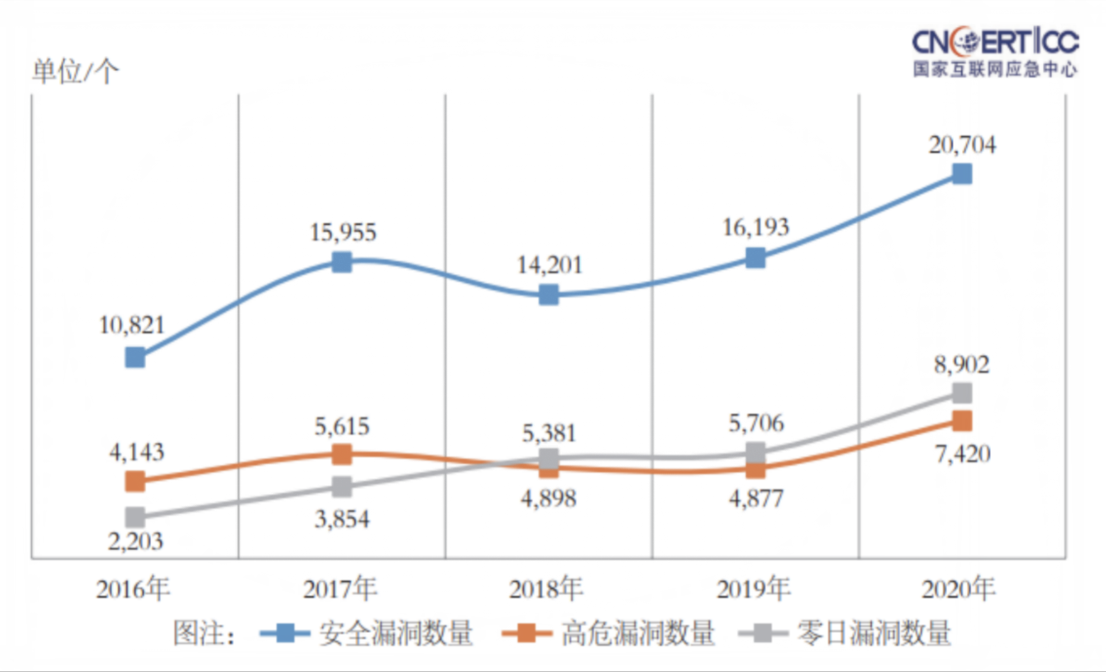 2016-2020年 CNVD 收录的安全漏洞数量趋势