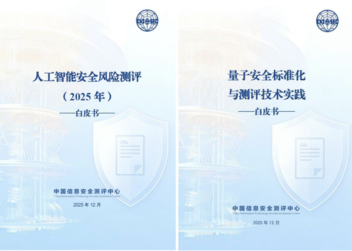 本次论坛的另一亮点是正式对外发布《人工智能安全风险测评(2025年)》和《量子安全标准化及测评技术》两份白皮书。两份白皮书由中国信息安全测评中心牵头,汇聚业界各方优势资源与实践经验,历经长期调研、反复论证与专家评审编制而成,旨在为相关领域技术研发、产业实践、标准制定和行业监管提供重要参考,助力形成统一规范的安全测评实践范式,推动人工智能安全、量子安全等新兴领域健康有序发展。