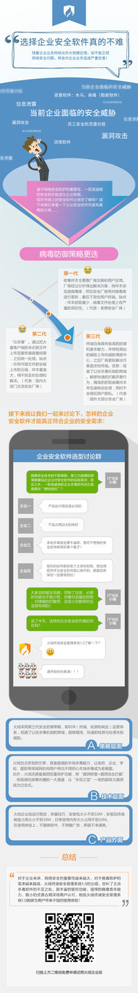 近年来,伴随网络灰黑产业的发展,企业的网络受到越来越多的安全威胁,无论是勒索病毒还是漏洞攻击,无论是流氓软件还是内鬼泄密都对企业网络安全构成了巨大威胁。如何选择一款高效易用的企业安全软件就成为企业不得不面对的重要课题。那企业安全软件究竟该如何选择?怎样的一款安全软件才能真正满足你的企业安全需求?接下来就让我用一张图来告诉你,选择企业安全软件真的不难: