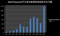 根据360手机云安全中心统计,2011年1月到6月30日,Android(安卓)平台新增恶意软件及木马968个,被感染手机数量达到118万人次;Symbian(塞班)平台新增恶意软件及木马1591个,被感染人数达到1206万人次。