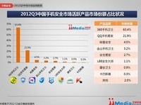 日前,中国权威移动互联网第三方数据挖掘和整合营销机构 - 艾媒咨询集团发布《2012Q3手机安全市场季度监测报告》。报告指出:伴随移动安全形势的恶化,越来越多的用户已开始选择使用手机安全产品,其中,360手机卫士以63.4%%的市场份额排名第一,远超同类产品市场份额的总和。