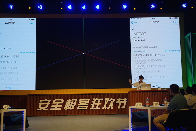 一名黑客向在场记者演示小米手环破解,黑客透过手环的蓝牙漏洞完全掌控小米手环的控制权。在黑客指挥下,记者手中的小米手环不停震动,而黑客的手机,显示了该手环的步数纪录。26/35